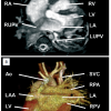 Pulmonary vein stenosis (PVS) can be defined as primary or secondary depending on whether it occurs in the absence or presence of prior atrial surgery or intervention. In a paediatric population primary PVS occurs most commonly following prematurity and secondary PVS most commonly following repair of total anomalous pulmonary venous drainage (TAPVD). In an adult population, secondary PVS can follow radio-frequency ablation procedures for atrial fibrillation or atrial futter. Primary PVS can occur in isolation but is often associated with a range of other cardiac diagnoses [11. Seale AN, Webber SA, Uemura H, Partridge J, Roughton M, Ho SY, McCarthy KP, Jones S, Shaughnessy L, Sunnegardh J, Hanseus K, Rigby ML, Keeton BR, Daubeney PE; British Congenital Heart Association. Pulmonary vein stenosis: the UK, Ireland and Sweden collaborative study. Heart. 2009;95:1944-9.