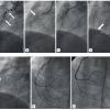 Even after successful wire passage across a chronic total coronary occlusion (CTO), PCI is sometimes limited similarly by the inability to pass with a balloon catheter . In this particular setting ELCA is a valuable option since, in contrast to rotational atherectomy, it can be advanced along standard guidewires ( Figure 7 parts 1 and 2). The laser can create a channel through the CTO which allows a balloon catheter to pass afterwards in order to facilitate final vessel reconstruction by stent implantation [2424. Bilodeau L, Fretz EB, Taeymans Y, Koolen J, Taylor K, Hilton DJ. Novel use of a high-energy excimer laser catheter for calcified and complex coronary artery lesions. Catheter Cardiovasc Interv. 2004;62:155-61. , 2525. Gruberg L, Mehran R, Dangas G, Hong MK, Mintz GS, Kornowski R, Lansky AJ, Kent KM, Pichard AD, Satler LF, Stone GW, Leon MB.. Effects of plaque debulking and stenting on short term and long-term outcomes after revascularization of chronic total occlusions: comparison of debulking (laser or RCA) plus stenting alone in the treatment of chronic total occlusions. J Am Coll Cardiol. 2000;35:151-156. ]. Meticulous attention should be paid to a correct distal intraluminal wire position before ELCA is performed in order to avoid perforations.